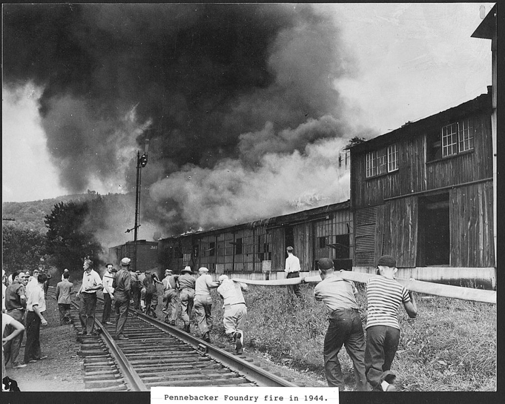 Gallery Weather Vane Award Medallion Flashover Simulator George in full gear Bagdad Fire Department CPR Chimp Upper Milford Fire Upper Milford Fire High Water Action Shepherd Pup Pennebacker Foundry Fire, 1944 New construction Plug Firehouse breakfast